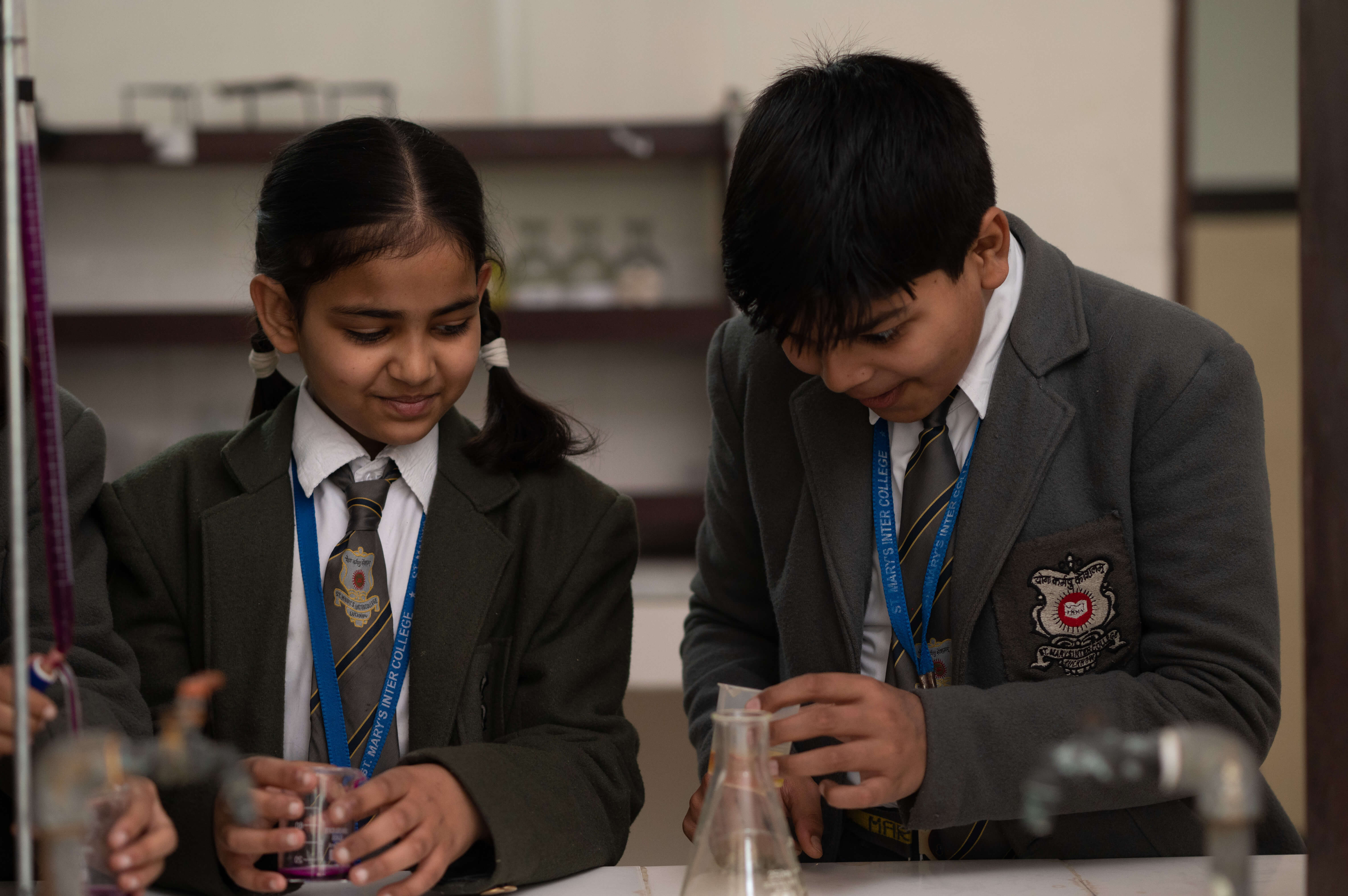 From Class VI to class VIII the curriculum of all academic subjects as well as a variety of co-curricular activities encourages creativity, aesthetics, and adventure. All students study English, Hindi, and Mathematics, Science (Physics, Chemistry, and Biology), Social Studies (History, Civics, and Geography) and third language (French, Sanskrit)through experimental learning. Students learning are further enhanced by regular enhancement assessments.
